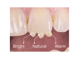 Observer tannen og velg mellom tre farger som gir en fremragende fargematch til de fleste pasienters tenner. Det er ikke behov for en komplisert fargeskala.