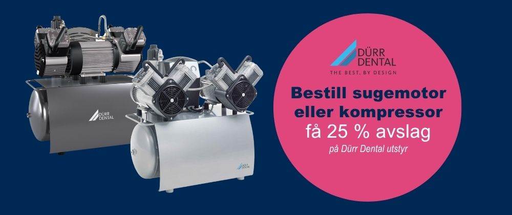 Nå får du 25 % rabatt om du bestiller sugemotor og eller kompressor fra Dürr Dental i november. Ta kontakt med utstyr@plandent.no eller ring oss på 22 07 27 33 så finner vi noe som passer for ditt behov.